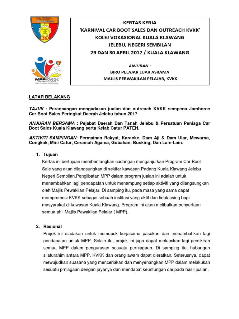 Contoh Kertas Kerja Car Boot Sale